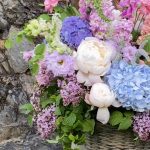Гортензия – 5 шт.Пион – 9 шт.Роза пионовидная – 7 шт.Колокольчик – 3 шт.матиолы – 13 шт.Лизиантус – 9 шт.Наперстянка – 6 шт.Львиный зев – 7 шт.Сирень – 11 шт.Малина – 15 шт.Травы – 7 шт.Оазис флористический – 4 шт.Корзина – 1 шт.