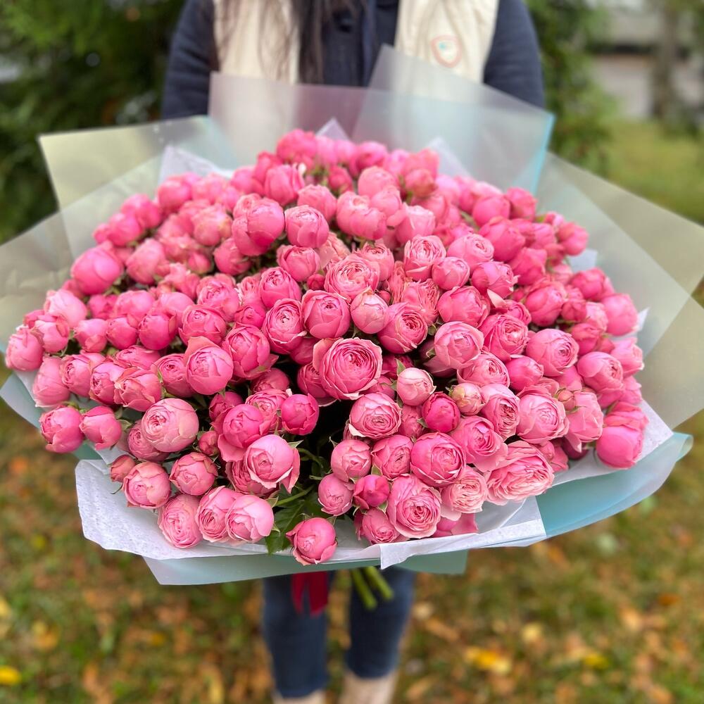 Вип букет из кустовых пион роз. Это прекрасные кустовые розы, которые при раскрытии напоминают пион . По этому их так любят девушки. У нас самая быстрая доставка, по этому если букет вам нужен срочно. Напишите нашим менеджерам и мы отправим букет максимально быстро .