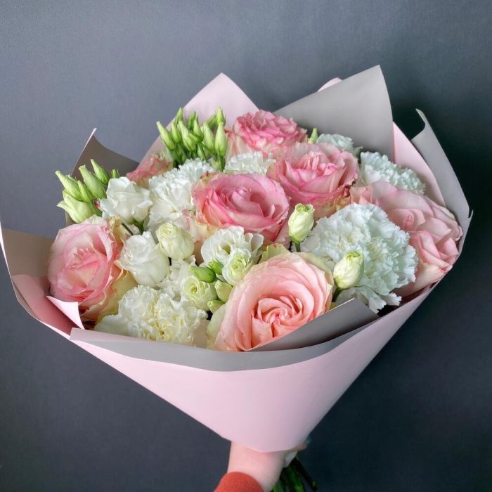 Категории: Гвоздики, Лизиантусы, Розы