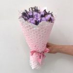 «Лавандовое созвездие» Букет из розы, гвоздики, статица и хлопка