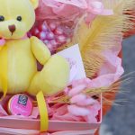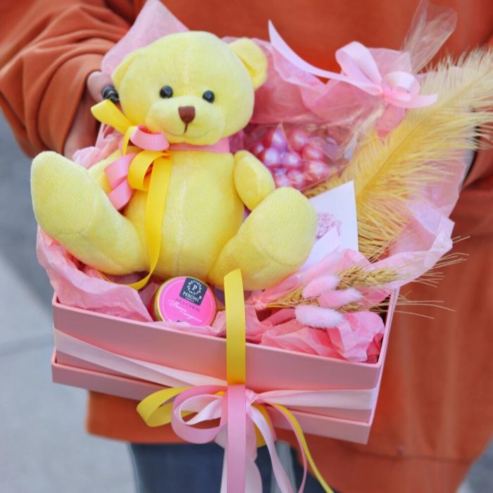 Подарочный набор “Розовый” с мишкой, свечей, сладостями, открыткой и сухоцветами