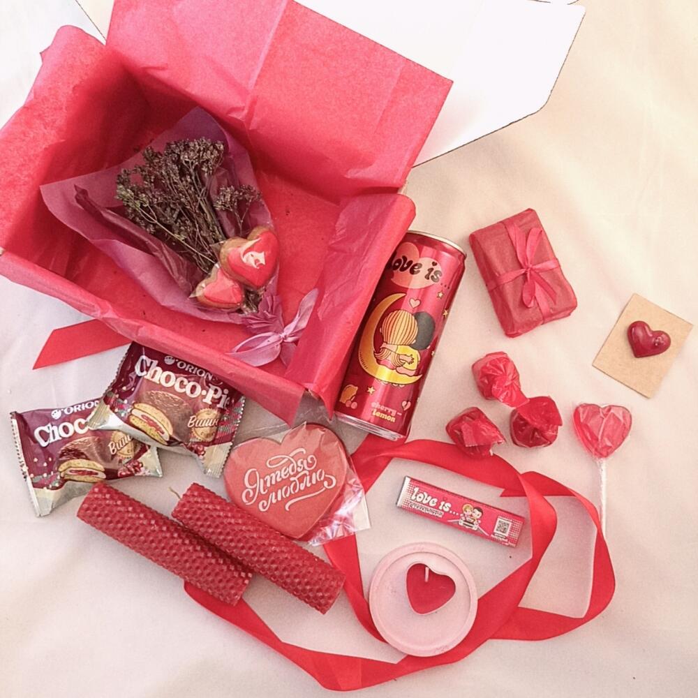 Лимитированный набор подарков для особого случая, который оставит приятные воспоминания. Набор подойдет для ценителей изящества и нежности. От упаковки до состава подарок собран с любовью своими руками❤В подарочный бокс входит: Свечи из вощины с приятным медовым ароматом и лепестками – сердечками. Приятно пахнет, даже когда просто стоит в комнате Пряник ручной работы с надписью Я тебя люблю. Три простых слова, которые хочется слышать чаще ❤ Пять жевательных конфет Love is со вкусом клубники с классическими картинками внутри для тех, кому романтика нужна как воздух Аирное мыло необходимый помощник для проблемной кожи. Оно легка подсушивает воспаления, а эфирное масло чайного дерева в составе обеззараживает. Лечебный эффект можно усилить, если 2-3 раза в неделю использовать мыло в качестве мыльной маски. В составе : отвар корня аира, глицерин, зелёная глина, масло чайного дерева Свеча в гильзе в виде сердечка Простой гипсовый подсвечник, чтобы не пришлось думать, куда поставить свечу Лимонад love is со вкусом вишня-лимон, прямо как у классической жвачки Брошь ручной работы в виде сердца с надписью Кусь. Выполнена из лëгкой безшамотной глины. Невесомая (!), хорошо смотрится даже на лёгкой одежде, не оттягивает ткань. Сделана Петербуржской художницей с любовью ❤Подарок разбавят приятные дополнения (ведь так интересно, когда открываешь коробку, а там столько всего, что глаза разбегаются): Маленький букетик из душицы, собранный в экологически чистой местности Крыма. Можно поставить у себя в качестве букета, а можно отломить веточку и положить в чай. А пряники в виде сердечек скушать вместе с чаем. (Чай с душицей пьют чтобы расслабиться и успокоиться) Два Чокопай с вишней Леденец в виде сердца со вкусом вишни Три шоколадные конфеты Подарочная крафтовая коробкаПодарите близким тепло и заботу одним правильным набором от Love&Post Наш нестандартный подарок придётся по душе каждой дочке, жене, маме, бабушке, любимой девушке или коллеге. Также поможем удивить отцов, дедушек, сыновей или внуков. Ведь пол и роль не важны, зато бывает так важно подарить чуточку внимания и тепла) А у нас есть все, чтобы помочь Вам с этим ❤Чтобы создать свой идеальный подарочный набор, Вы можете изменить состав или сделать свой эксклюзивный набор подарков:-добавить открытку в конверте или без, в которой мы напишем Ваше поздравление- выбрать имбирные пряники с поздравлениями или просто с красивой картинкой- дополнить подарок, положив в него: чай, брошь, украшения, сумку – шоппер, блокнот, макаронс, крем, маску для лица, мыло ручной работы – стараемся воплотить любые идеи- заменить то, что есть в набореДля этого пишите нам Если Вы добавляете позиции к набору, мы бесплатно поменяем упаковку на размер побольше и оформим в том же стиле, что и упаковка в товаре. Обязательно пришлëм фото по готовности К каждому заказу кладëм сладкий комплимент. Можем собрать набор, оформить коробку или крафтовую объëмную фигуру, подобрать подарки в цвет, сделать красивый креативный (необычный, оригинальный), романтичный, полезный (практичный) или шуточный (юмористический) набор на любую сумму индивидуально для Вашего торжества Сет подарков для женщин, для подростков, для женщины, подарок для жены, подарочный бокс для любимой, коробка с подарками для девушки, презент для коллеги, мамы, матери, ба