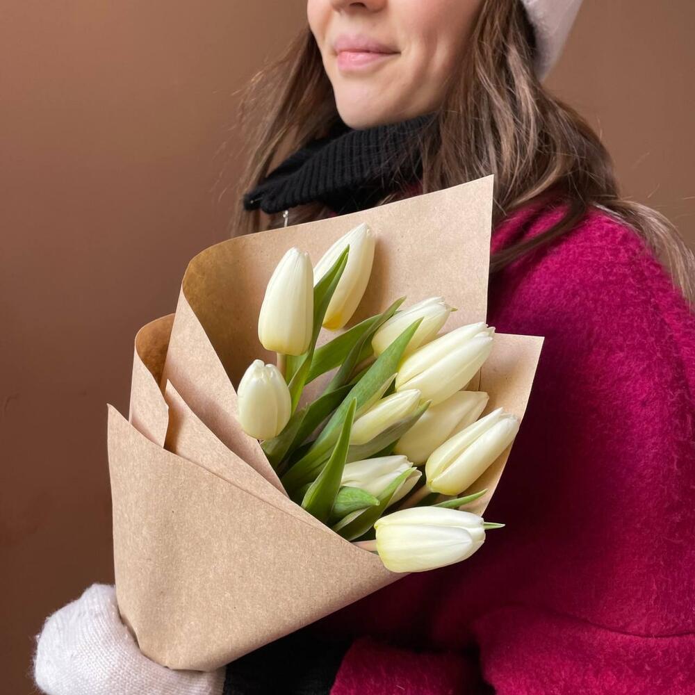 Крафтовая упаковка – 1 шт.Белый тюльпан – 11 шт.