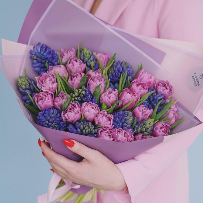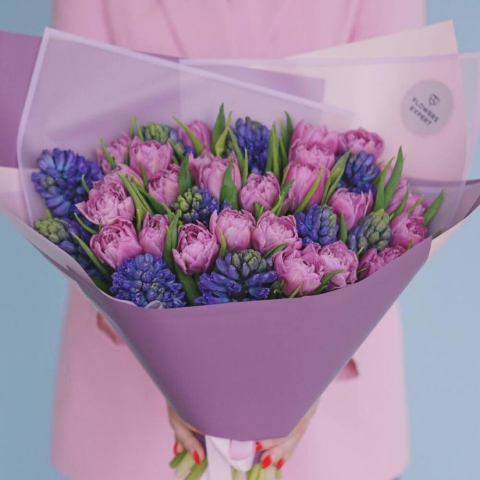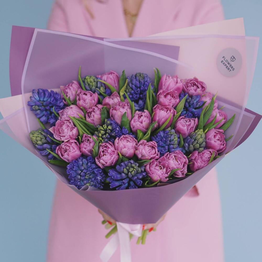 Букет с пионовидными тюльпанами и гиацинтами