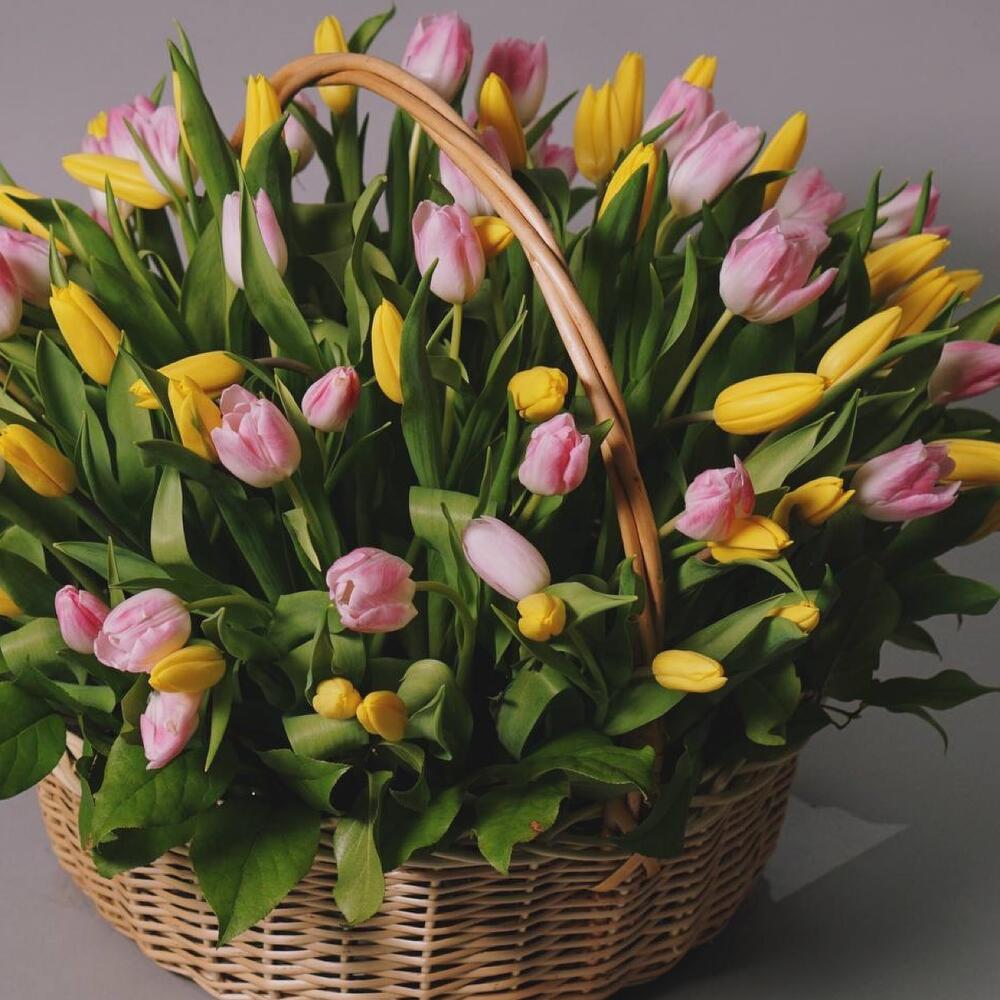 Корзина плетеная – 1 шт.Тюльпан – 101 шт.
