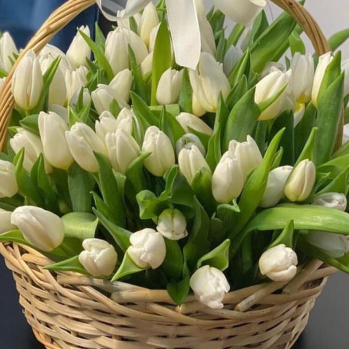 Корзина с белыми тюльпанами